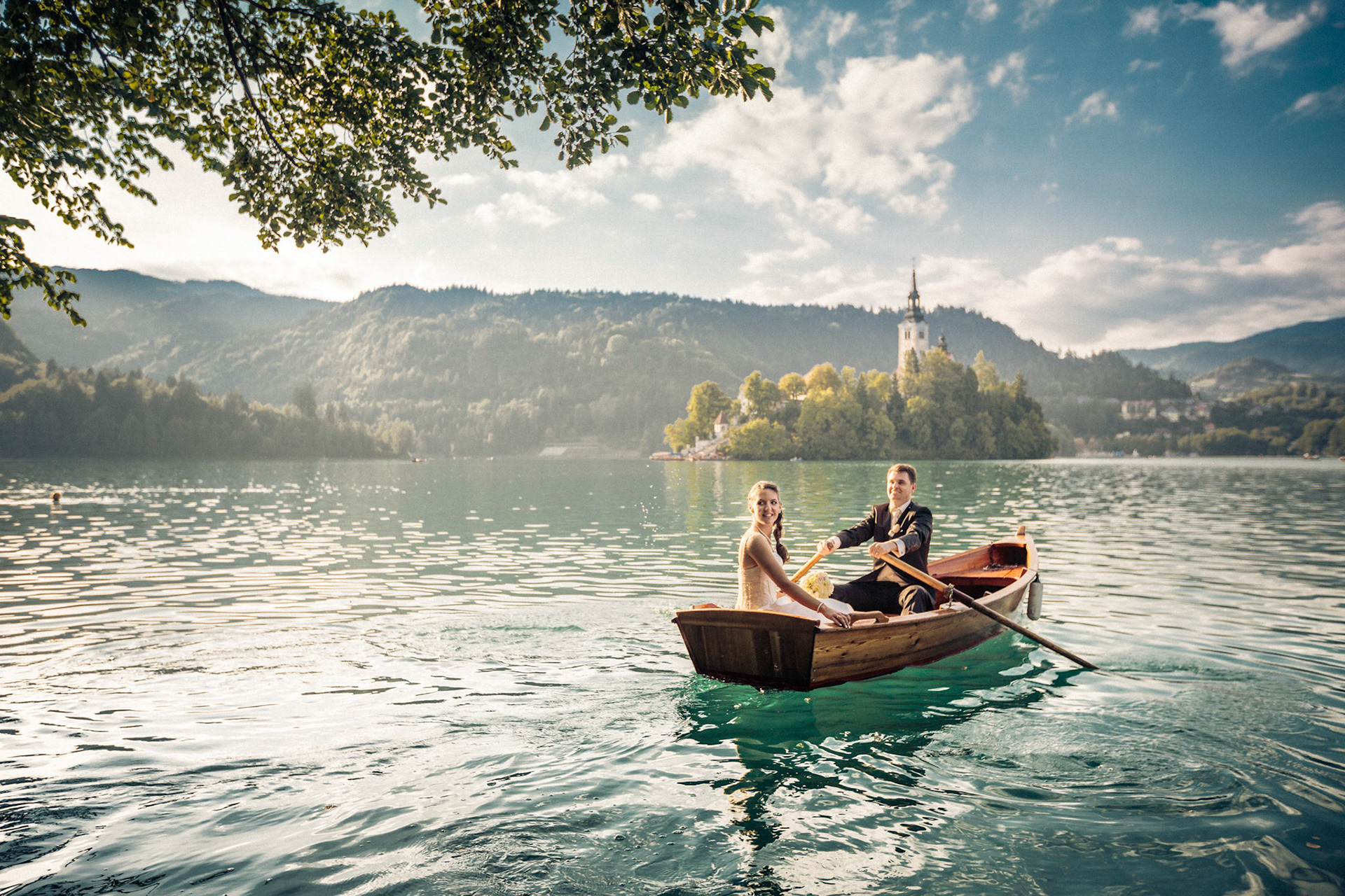 Wedding photography Bled Island Rowing.